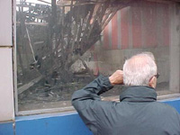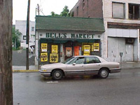 | A hiker looks into what was formerly Alexander’s Supermarket on Braddock Avenue. Buildings disappear in the night (January 12, 2005 Article) |