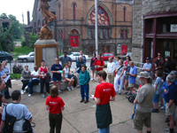 | Along the route in North Braddock, a young girl and her mother greeted hikers with a small stand that sold drinks and snacks. | ![]() |