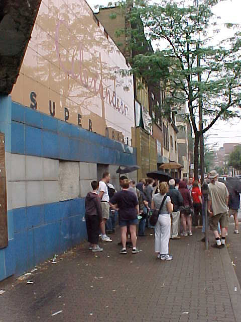 | A hiker looks into what was formerly Alexander’s Supermarket on Braddock Avenue. Buildings disappear in the night (January 12, 2005 Article) |