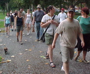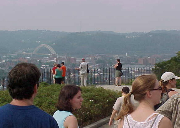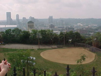 | We began our hike in East Park, or is it North Park? Those parks that surround Allegheny Center. It was a fine day for taking in a Pirates game and walking little dogs. |