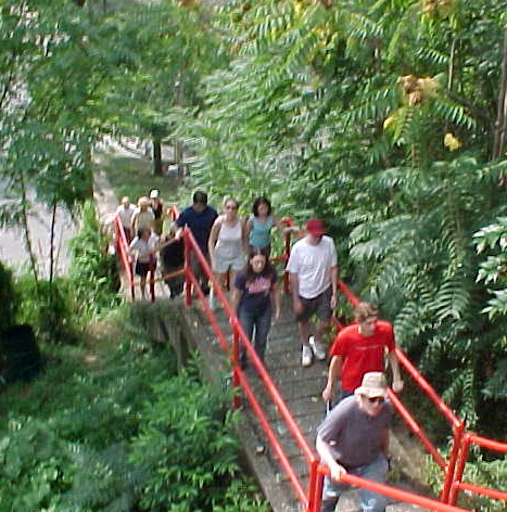 | Fineview not only has some fine views, it has some fine paint jobs on its steps. Each staircase we walked had different-colored railings. |
