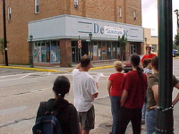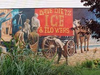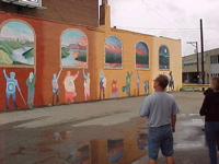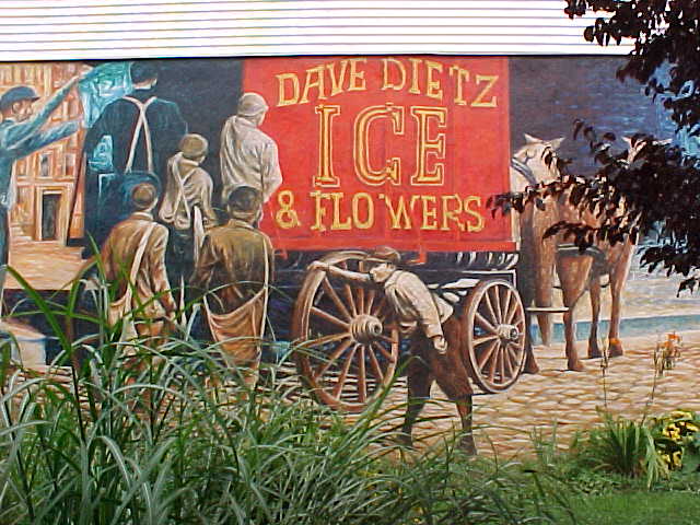 | One of our first stops was the Dave Dietz Florist building, which has a mural depicting what life was like in early 1900s-era McKees Rocks. Artist Jim Levendosky painted the mural with the help of students from Sto-Rox High School. |