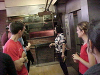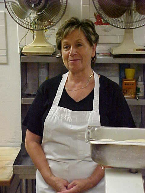 | The owner, Mary Mancini Hartner, graciously invites us in to see the large ovens. The bakery is in operation 24 hours a day. |
