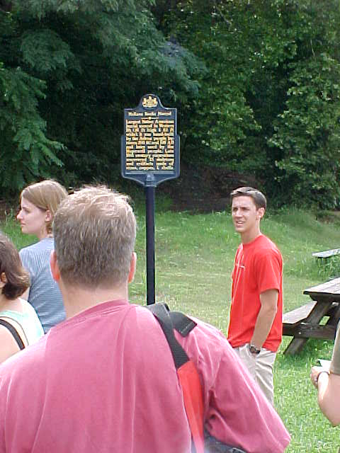 | Ranger’s Field is tucked away in a corner of McKees Rocks directly below an immense (and guess what? rocky) cliff right on the Ohio River. This historical marker notes that the cliff is the site of a Native American burial mound. |